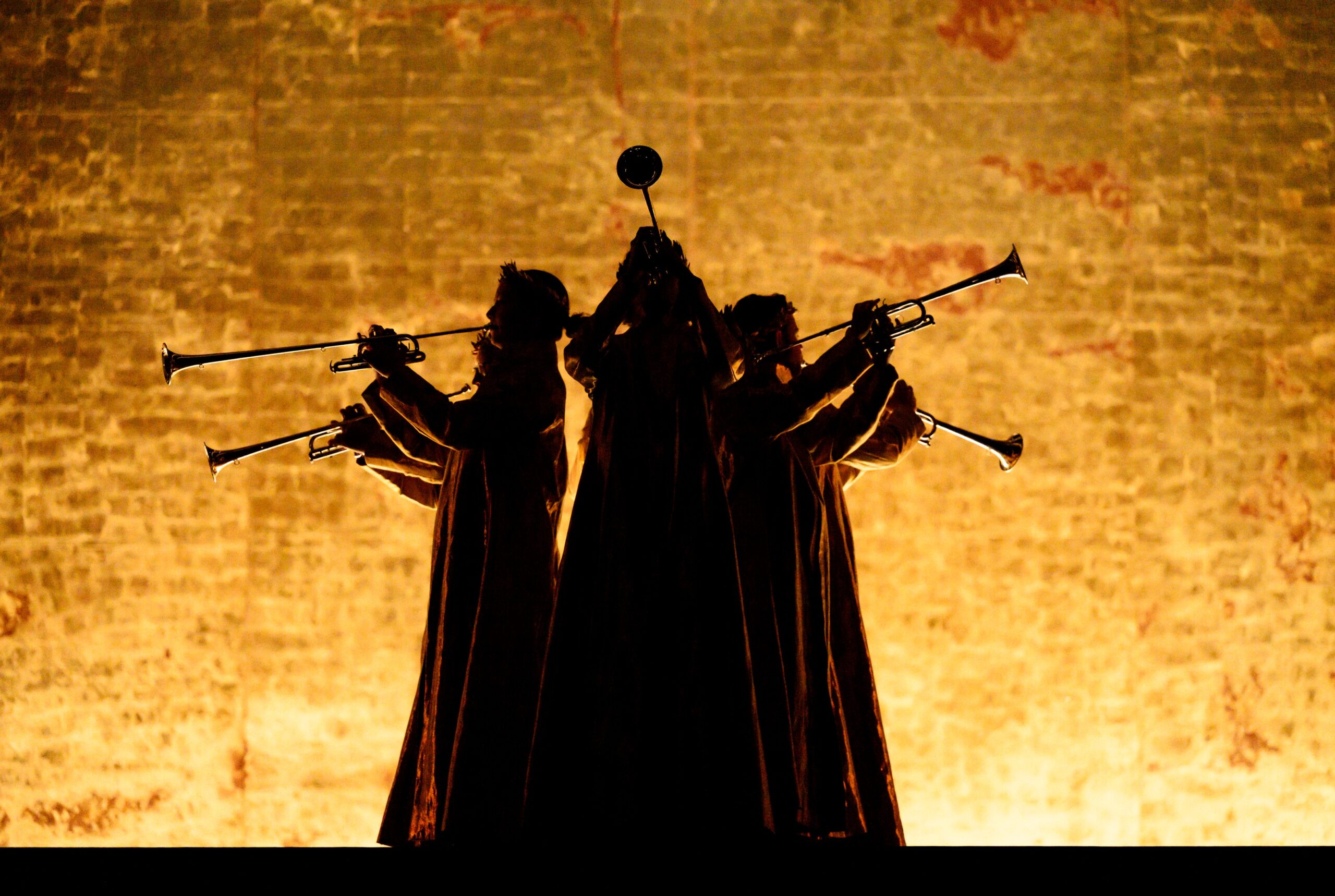När Radamès (Milen Bozhkov) ska återvända hem, som hyllad hjälte efter att ha vunnit kriget mot Etiopien, spelas den mäktiga Triumfmarschen. Medan Aidatrumpeterna trumpetar glatt ligger Radamès i plågor på golvet, bakom honom utspelas vidriga stridsscener. Kontrasten sitter som ett slag i magen. Krig är alltid ett misslyckande.